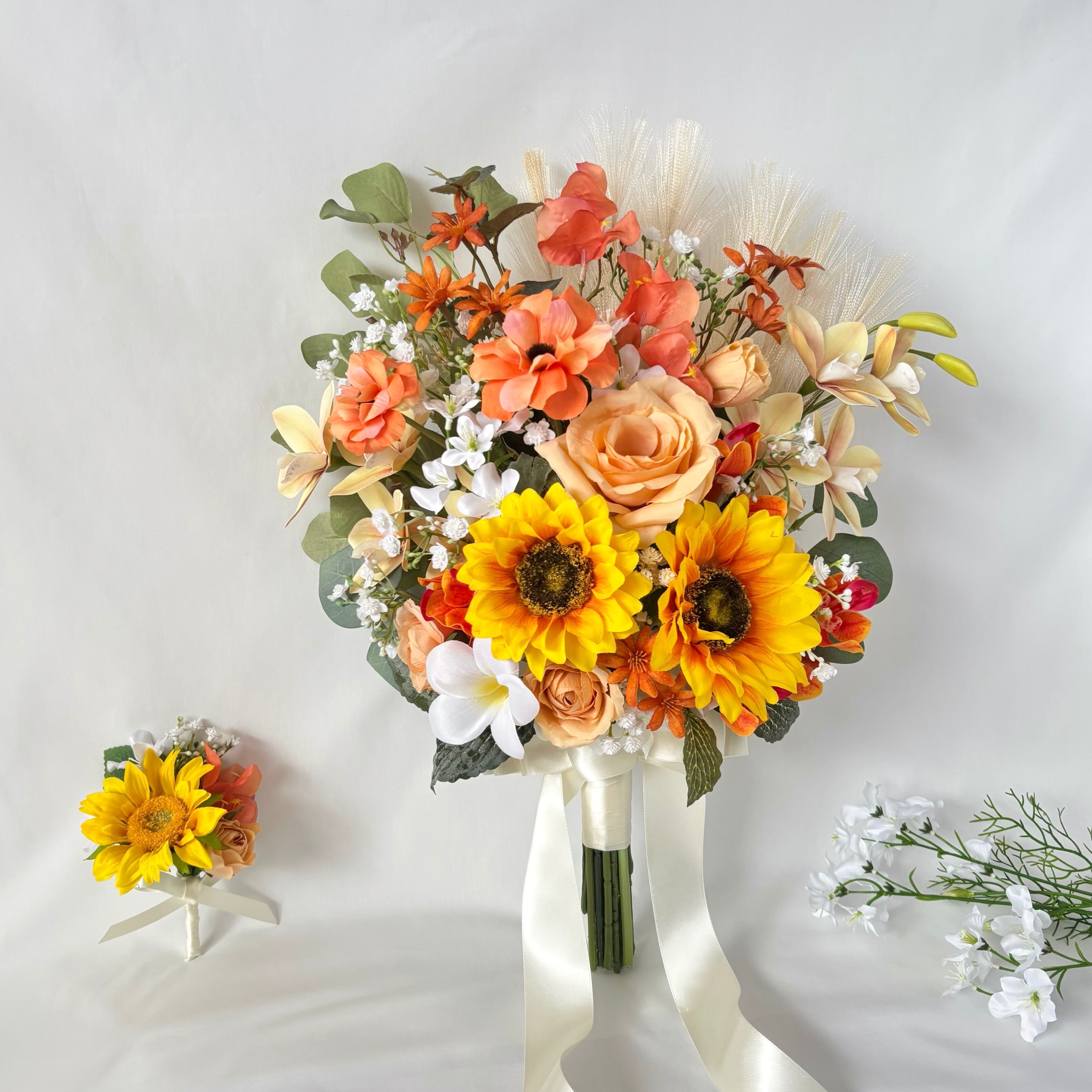 ひまわりとオレンジローズのアンティーククラッチブーケ