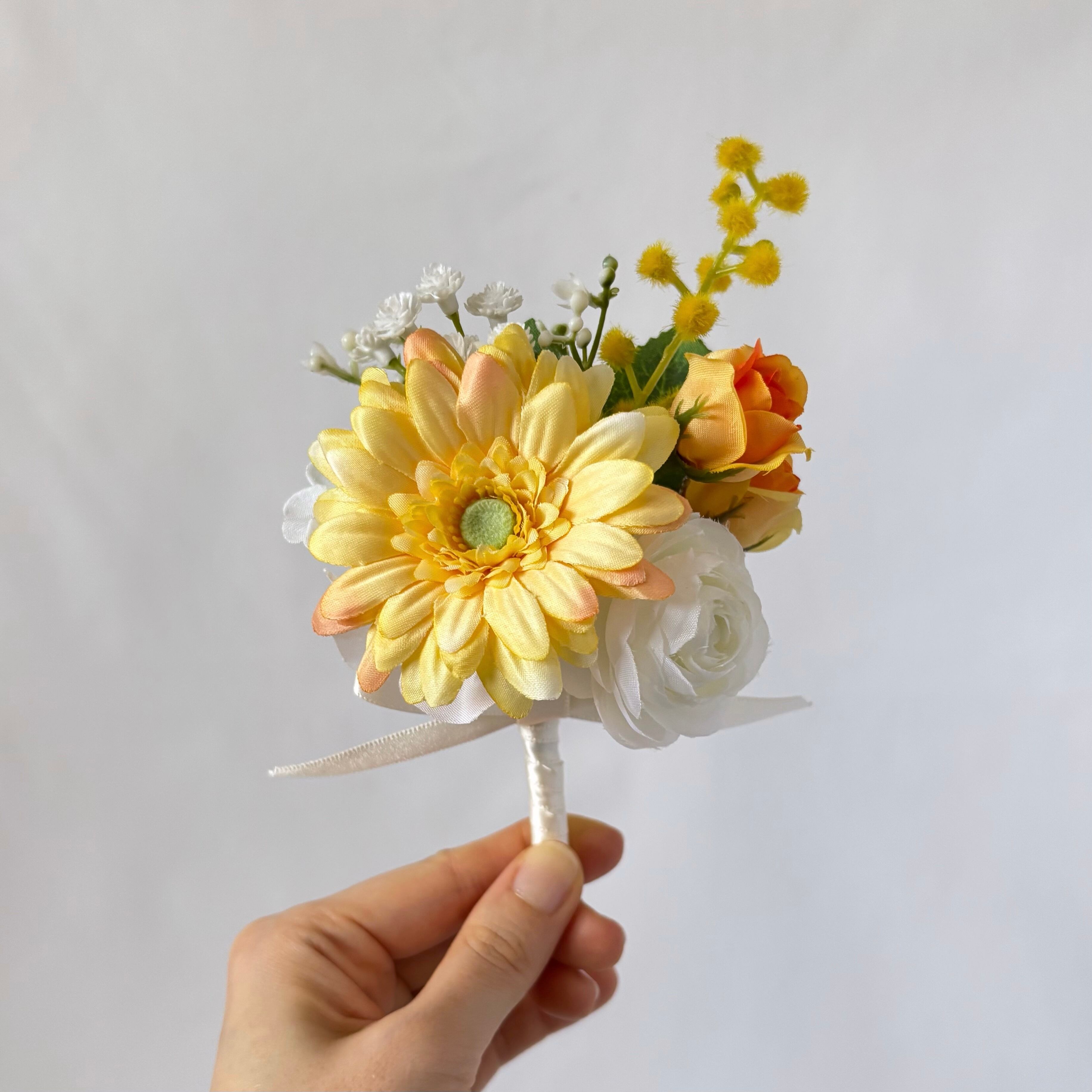 1. お揃いの花材でお作りするブートニアをお付けすることができます。