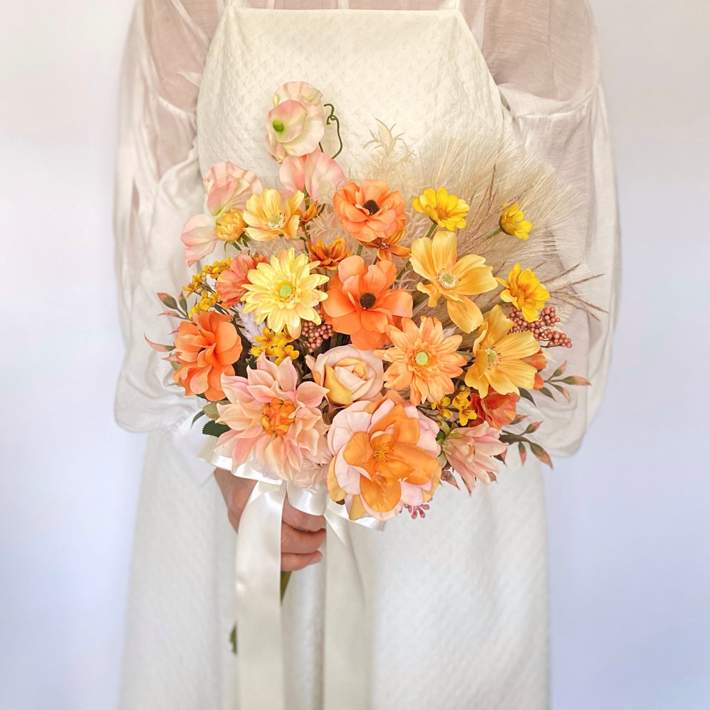 4種類のパンパスグラスとスイートピーがふんわり揺らめく、ナチュラルなシルエットに仕上げます。