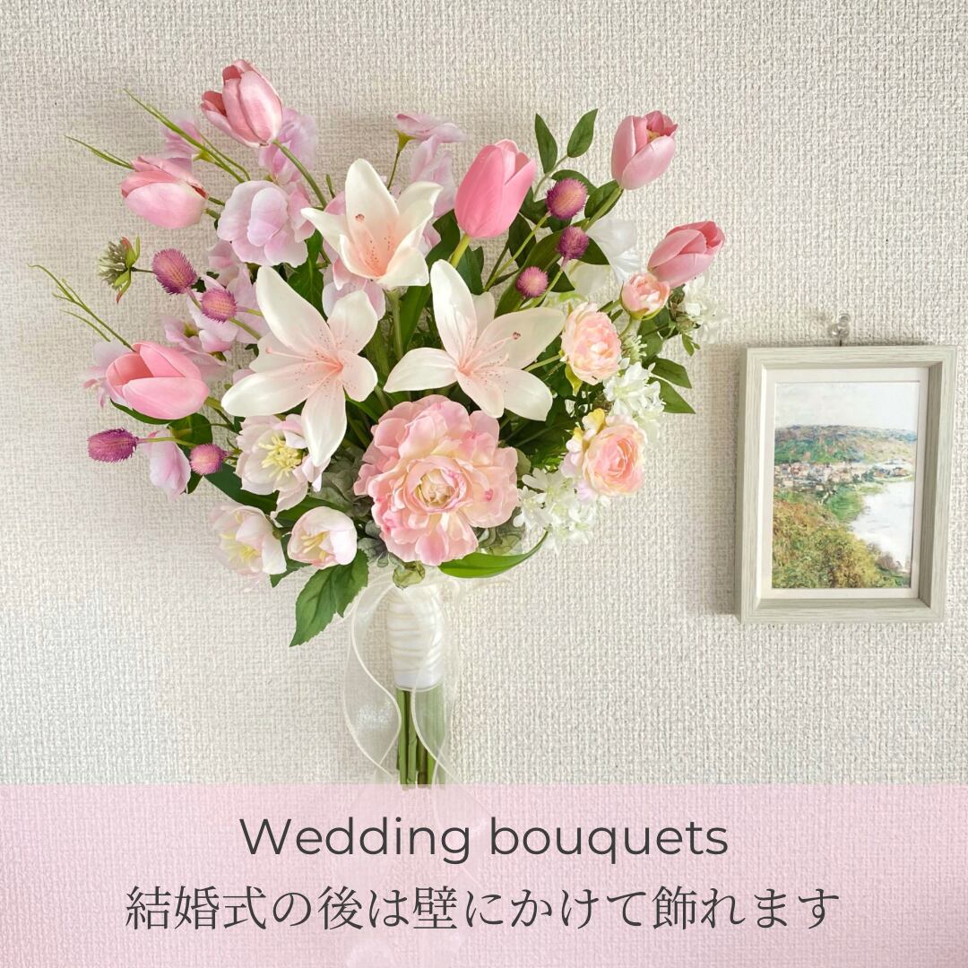 ※ブーケは壁にかけて飾れますが、結婚式の最中に置いておくためなどに必要な方はお選びください。